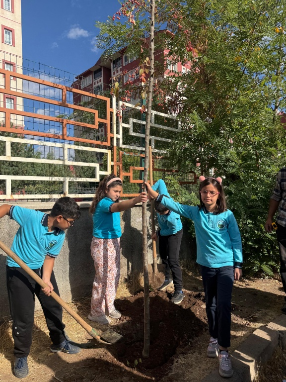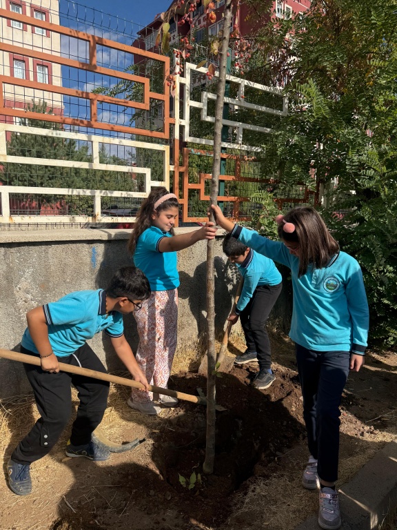 Okulumuzda yürütülen “Yeşil Vatan, Benim Okulum Geleceğe Çare” projesi kapsamında doğaya değer katan yeni bir çalışma daha gerçekleştirildi. Bingöl Belediyesi iş birliğiyle okul bahçemizin ön bahçesinde, öğrencilerimizle birlikte ağaçlandırma çalışması etkinliği yapıldı.